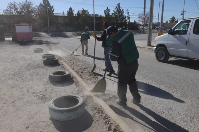 Varias cuadrillas atendieron las áreas verdes ubicadas en la calle del mismo nombre, desde el bulevar Fundadores. Además, los trabajadores limpiaron un lote baldío usado de forma indebida por varios ciudadanos que tiran basura, escombro y tiliches.