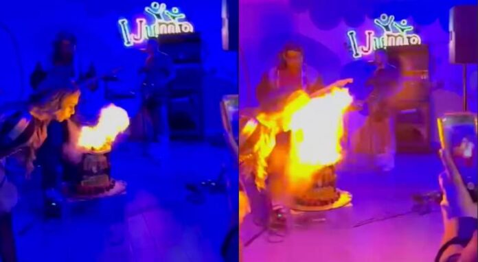 Arlen Hernández relató que para su cumpleaños ella quería hacer el truco de soplar un polvo a las velas encendidas para hacer el fuego más grande.