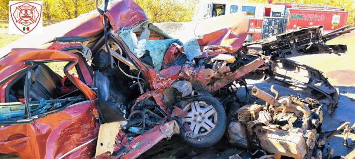 Se informó que la mujer conducía un vehículo VW Jetta en dirección a Lebaron y al tratar de esquivar un vehículo que iba en sentido contrario se estrelló de frente contra un camión de la Lechería Zaragoza, el cual quedó volcado.