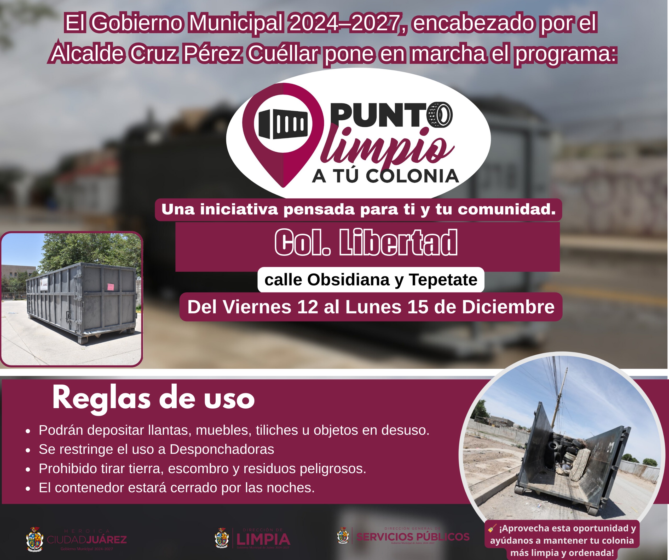 Con el propósito de facilitarle a la ciudadanía la disposición adecuada de los residuos voluminosos, la Dirección de Limpia instaló nuevos cuatro Puntos Limpios a tu Colonia.