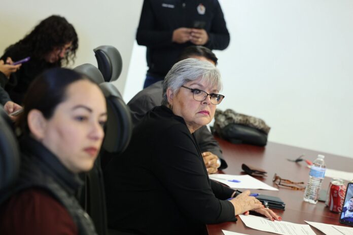 Durante la reunión, la coordinadora de la comisión, regidora Mireya Porras Armendáriz, junto con los regidores María Dolores Adame y Alejandro Alberto Jiménez, analizaron la solicitud del fraccionamiento Portales del Desierto, etapas 1, 2 y 3, desarrollado por Integraciones Templer.