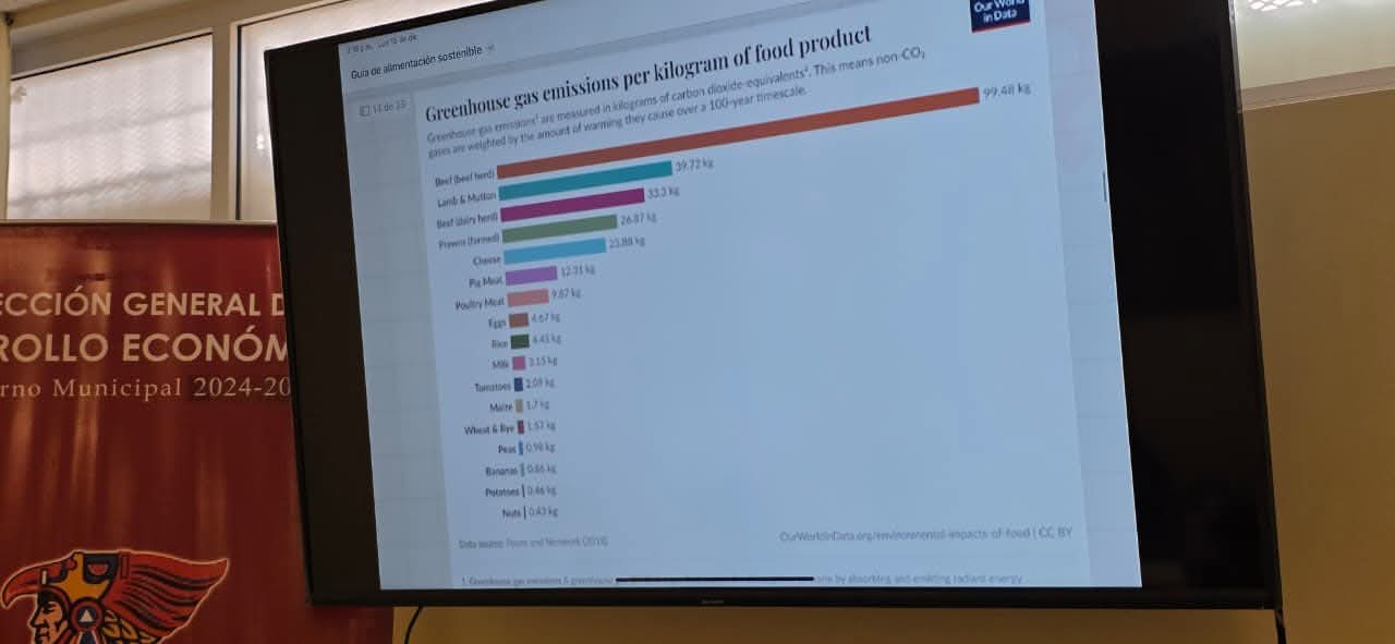 De manera coordinada con la Dirección General de Desarrollo Económico y la Dirección de Desarrollo Rural del Gobierno Municipal, la Oficina de Resiliencia de Juárez avanza en la elaboración de una guía alimenticia enfocada en promover un consumo más consciente, a través de la reducción en la ingesta de carne, como una medida para disminuir la huella de carbono y fomentar prácticas sostenibles en la ciudad.