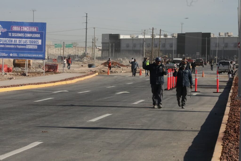 El Presidente Municipal, Cruz Pérez Cuéllar, acompañó a la Gobernadora del Estado, María Eugenia Campos Galván, en la ceremonia para inaugurar la ampliación de la avenida De las Torres, una obra estratégica que fortalece la movilidad urbana y beneficia directamente a miles de familias juarenses.
