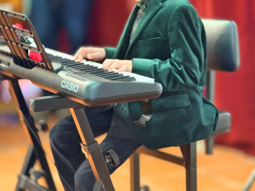 La actividad se realizó el sábado 20 de diciembre y contó con la participación de diez estudiantes de entre 7 y 20 años de edad, quienes ofrecieron una muestra de su talento interpretando diversos instrumentos como violín, piano, arpa, guitarra eléctrica, entre otros, ante la presencia de familiares y acompañantes.