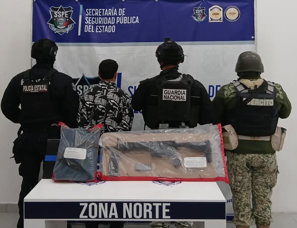 A través de los recorridos permanentes de disuasión del delito, la Secretaría de Seguridad Pública del Estado (SSPE), en colaboración interinstitucional, llevó a cabo la detención de un menor de edad de 17 años, identificado con las iniciales K. A. C. V., quien portaba un arma de fuego larga calibre .223 mm.