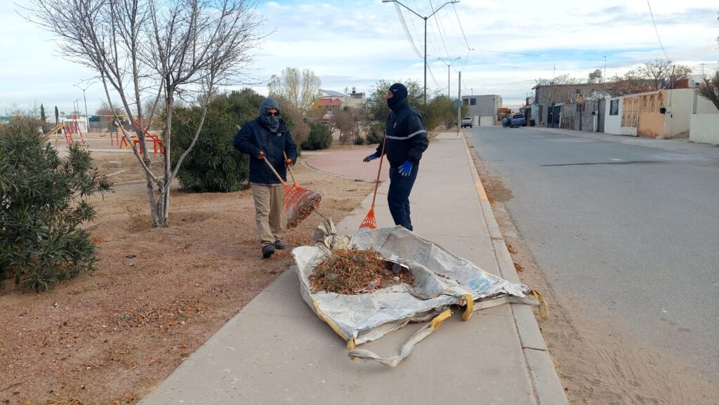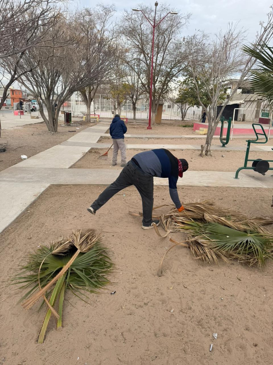 Daniel Zamarrón Saldaña, titular de la dependencia, informó que en esta ocasión las labores se realizaron en el parque ubicado en el cruce de las calles Tasajillo y Bisnaga, del fraccionamiento Oriente XXI Roma, así como en las calles Yepómera y Arboledas III, de la colonia Médanos, donde el personal intervino las áreas verdes y arbolado para mejorar la imagen urbana y fortalecer la seguridad de las familias.