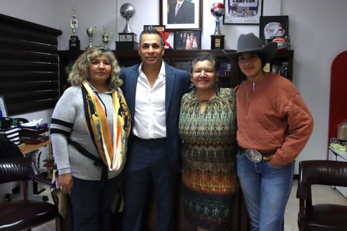 El director del Instituto Municipal del Deporte y Cultura Física de Juárez, Juan Escalante, se reunió con Raquel Flores, presidenta de la Asociación Mexicana de Etnias, para afinar detalles sobre un evento de rodeo que se realizará el 7 marzo en el Lienzo Charro “Adolfo López Mateos”.