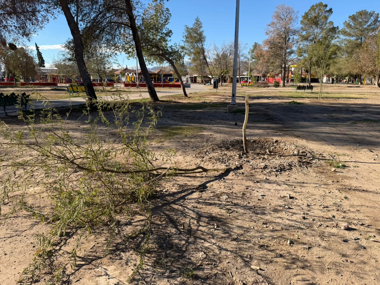 El titular de la dependencia, Daniel Zamarrón Saldaña, informó que durante recorridos de supervisión, las cuadrillas detectaron un árbol severamente dañado en el parque Borunda, el cual presuntamente fue arrancado de manera intencional, ya que presenta señales claras de haber sido quebrado.