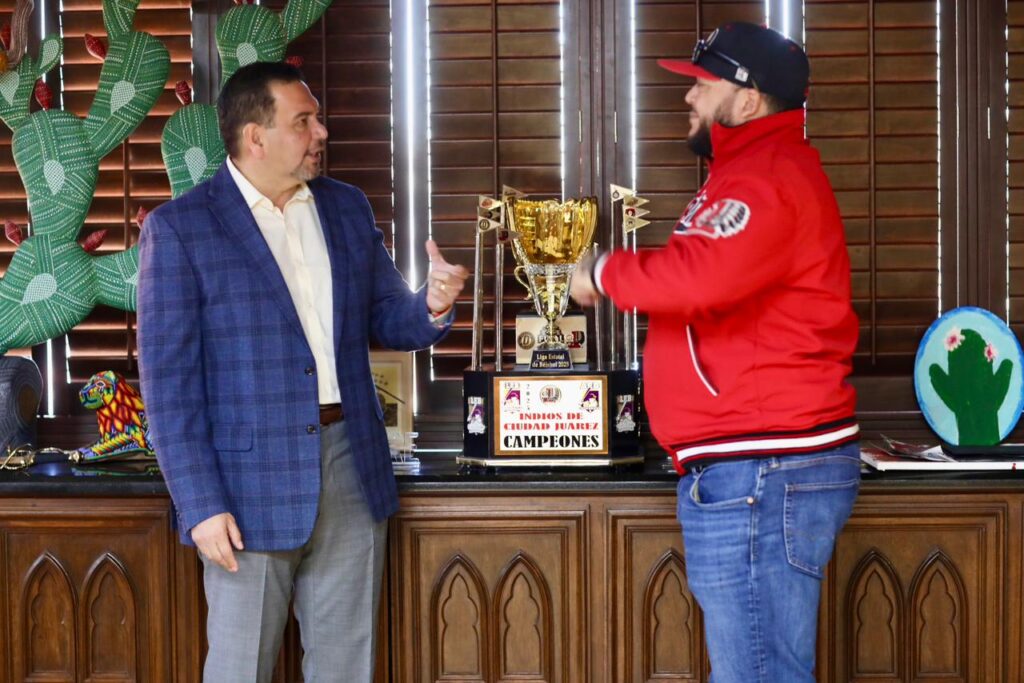Alfonso Venegas, gerente deportivo de Indios de Juárez, dijo que esta fue una visita de cortesía con el alcalde, a quien le presentaron el trofeo que los acredita como campeones de la temporada 2025 y también le hicieron saber sobre los proyectos deportivos y sociales del equipo para este año.