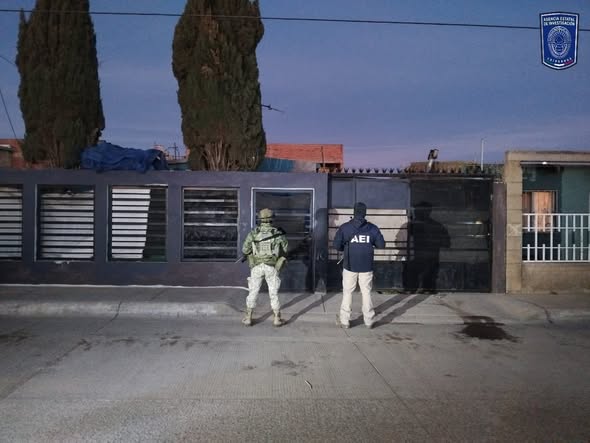 El informe policial indica que, en coordinación con elementos de la Secretaría de la Defensa Nacional (SEDENA), se llevó a cabo la intervención por mandamiento judicial en la finca ubicada en la calle 64, entre Moctezuma y Águilas.