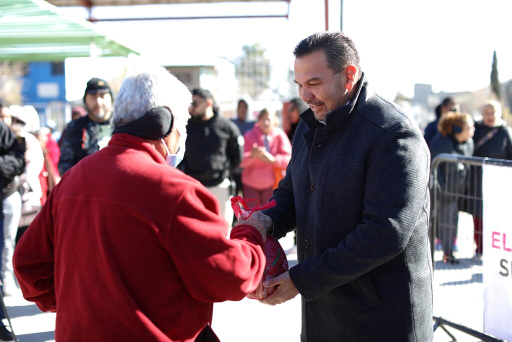Esta mañana el Presidente Municipal Cruz Pérez Cuéllar hizo la entrega de 250 piernas de cerdo a vecinos de la colonia 16 de Septiembre, como muestra de gratitud ante el apoyo en la administración.