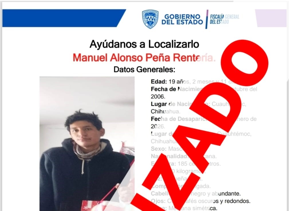 La Fiscalía de Distrito Zona Occidente en el municipio de Cuauhtémoc, concluyó las carpetas de investigación iniciadas con motivo de los reportes de ausencia y/o desaparición de un menor de 11 años y de un joven de 19 años tras localizarlos sanos y salvos.