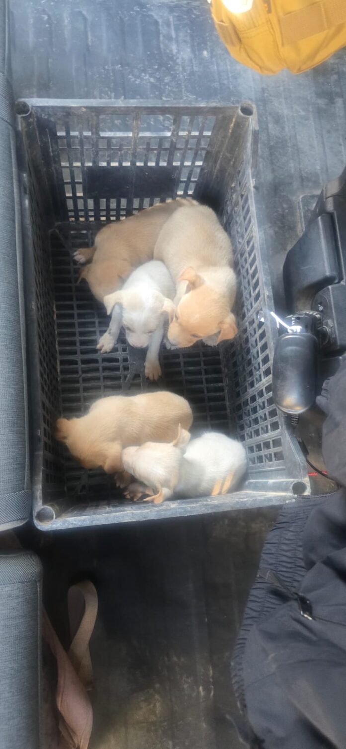 En una acción humanitaria, agentes de la Secretaría de Seguridad Pública Municipal adscritos a la Dirección Especializada en Violencia Familiar y de Género, resguardaron a cinco cachorros que fueron abandonados en la vía pública.