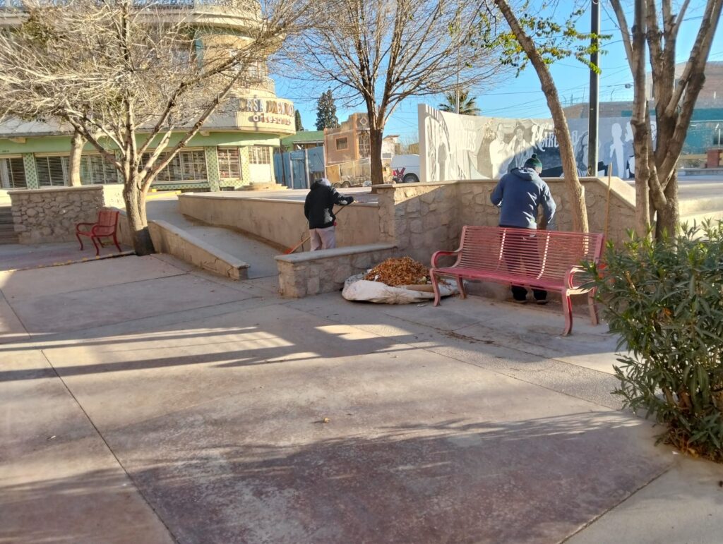 Con el propósito de conservar en buenas condiciones los espacios públicos y ofrecer áreas limpias y seguras para la ciudadanía, el personal de la Dirección de Parques y Jardines llevó a cabo trabajos de mantenimiento en la Plaza Tin Tan, ubicada en la avenida 16 de Septiembre.