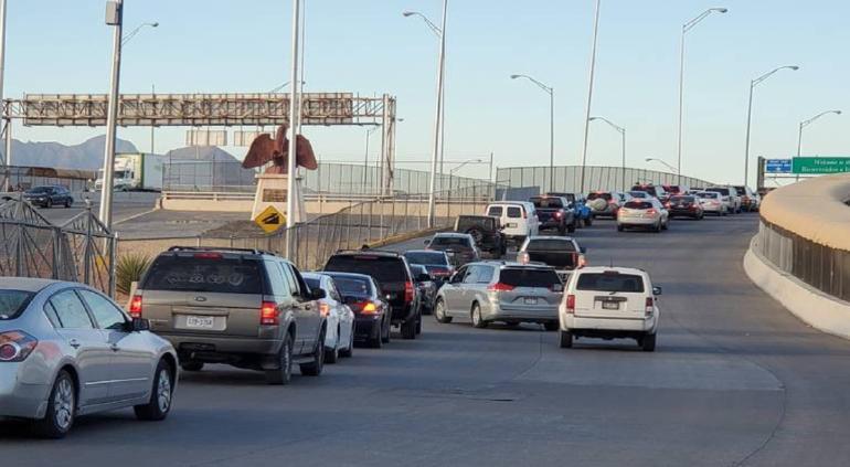 Cientos de conductores se encuentran presentes en los diferentes puentes fronterizos, donde hacen tiempos de espera moderados para llegar a El Paso, Texas.
