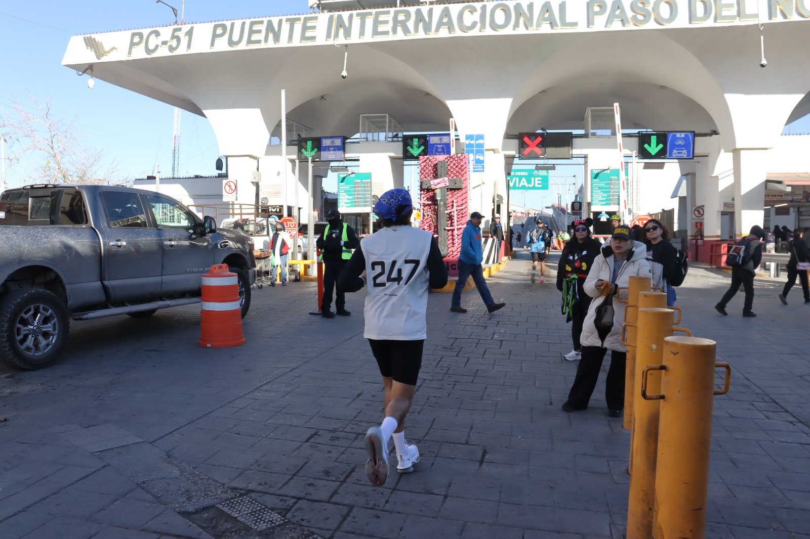 Una vez en la línea sobre el puente internacional Paso del Norte, ahí los corredores cruzaron la meta al son de la música de mariachi que los esperaba al igual que amigos y familiares felices.