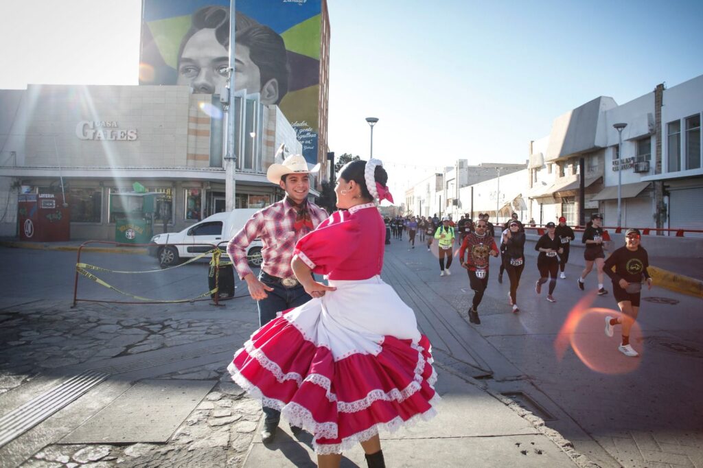 Entre las actividades destacaron presentaciones de danza folclórica, mimos, la participación de los tradicionales pachucos, así como botargas, quienes animaron distintos puntos del trayecto y ofrecieron a corredores nacionales y estadounidenses una muestra de la riqueza cultural que distingue a esta frontera.