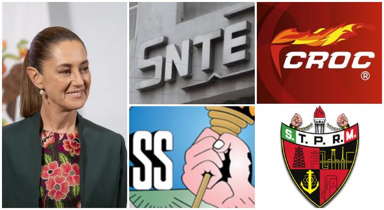 Durante el primer año del gobierno de Claudia Sheinbaum, principales fuerzas sindicales se unieron a su movimiento de cuarta transformación, como el Congreso del Trabajo, SNTE, Petroleros (STPRM), CROC, Ferrocarrileros (STFRM), Burócratas (FSTSE) y Seguro Social (SNTSS).