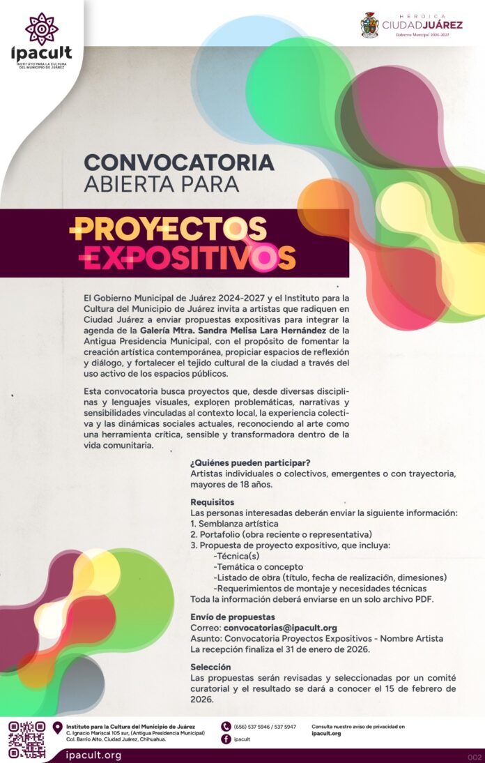 Para más información, las y los interesados pueden consultar ipacult.org o comunicarse a los teléfonos 656-537-5946 y 537-5947.