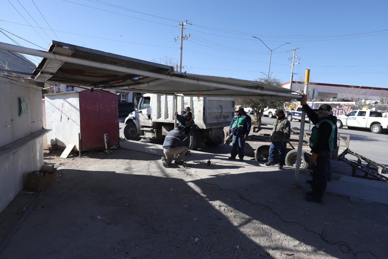 Como parte del programa permanente de Reordenamiento Urbano, empleados de distintas dependencias municipales llevaron a cabo un operativo en el que retiraron puestos de lámina instalados en un espacio público en la colonia Ampliación Fronteriza.
