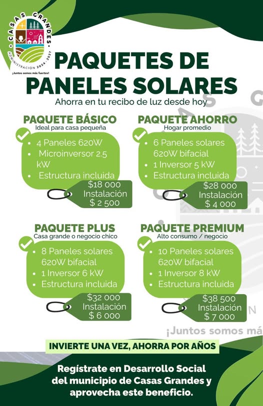 Se abre convocatoria para equipos solares domésticos con subsidio en las oficinas de Desarrollo Social en Casas Grandes.
