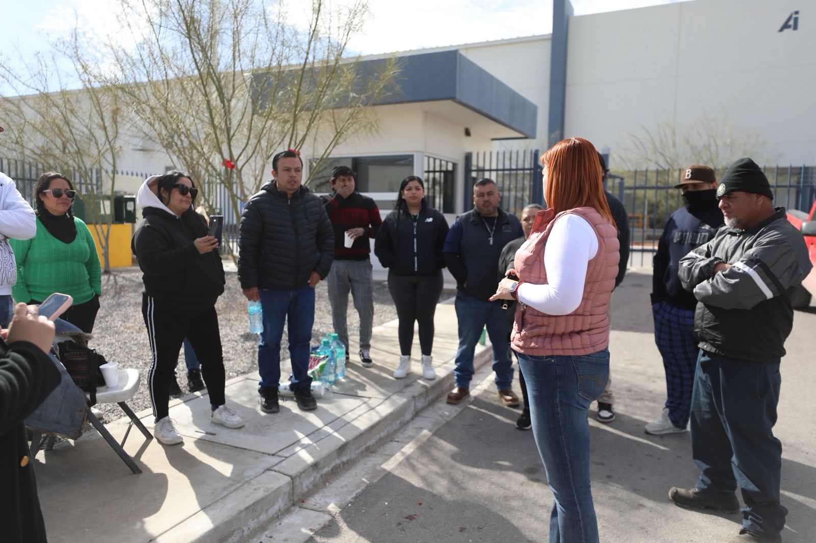 Personal de la Coordinación de Atención Ciudadana del Municipio visitó este día a las personas que trabajaron en cuatro maquiladoras situadas al suroriente de la ciudad y que suspendieron sus operaciones días atrás, llevándoles alimentos y bebidas.