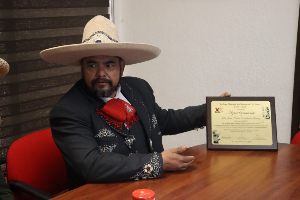 Por el apoyo otorgado al deporte de la charrería durante el año 2025, directivos de la Liga Municipal de Charrería y la Asociación de Charros Unidos de Juárez A.C. agradecieron al director del Instituto Municipal del Deporte y Cultura Física de Juárez, Juan Escalante.