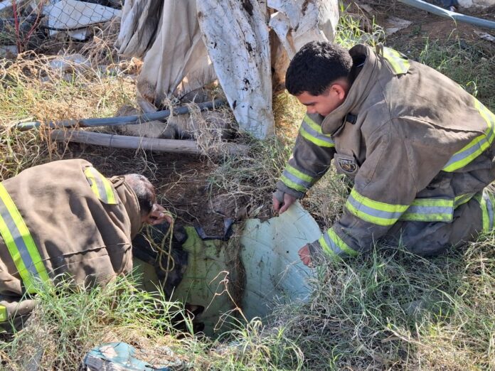 Esta mañana, elementos operativos de la Dirección General de Protección Civil atendieron un llamado de emergencia en la colonia Partido Iglesias, donde se reportó que tres perros se encontraban atrapados en un pozo al interior de un negocio.