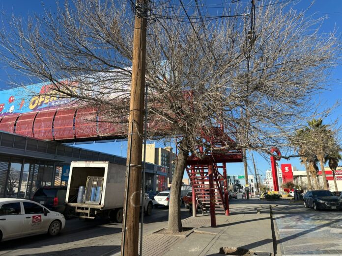 La Dirección de Parques y Jardines llevó a cabo trabajos de poda formativa en un árbol ubicado en el cruce de la avenida Paseo Triunfo de la República y López Mateos, con el propósito de prevenir riesgos a peatones del sector.