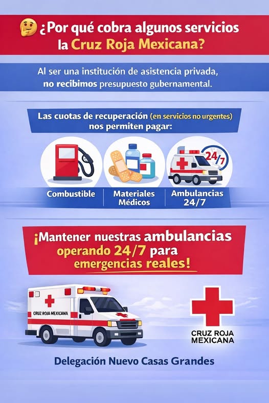 La Cruz Roja Mexicana NO cobra por atender emergencias reales (accidentes de tránsito, caídas, volcaduras, enfermos, intoxicaciones).