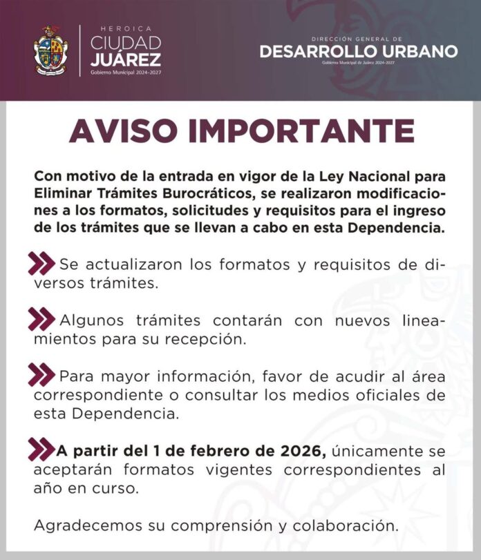 Con el objetivo de brindar un servicio más ágil y ordenado a la ciudadanía, la Dirección General de Desarrollo Urbano reiteró que a partir del 1 de febrero únicamente se aceptan formatos actualizados para la realización de trámites.