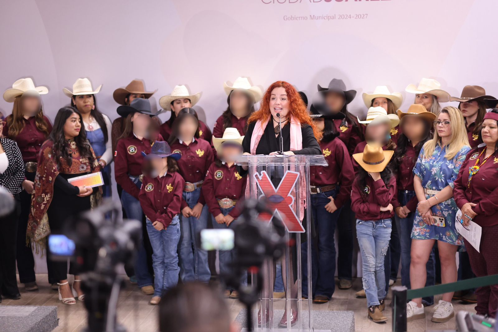 En La rueda de prensa también estuvieron Raquel Prado, presidenta y fundadora de la Asociación Mexicana de Etnias de Rodeo (AMER); Diana Lozano, representante del Instituto Municipal de las Mujeres; Ana Prado, de Rodeo Queen Academy; Raúl Ávila, de la Coordinación General de Seguridad Vial y Erika Mendoza, representante de la compañía de danza folclórica Ortiguera.