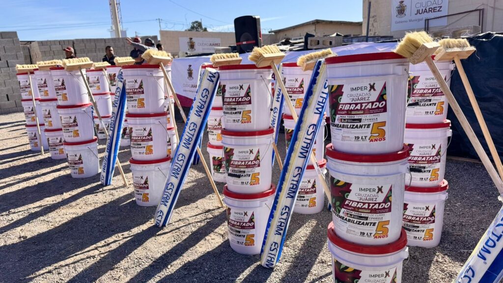 Cada paquete incluye tres cubetas de impermeabilizante de 19 litros, con una duración aproximada de hasta cinco años tras su aplicación, además de malla y cepillo, lo que permite a las y los beneficiarios contar con el kit completo para proteger adecuadamente el techo de sus viviendas.
