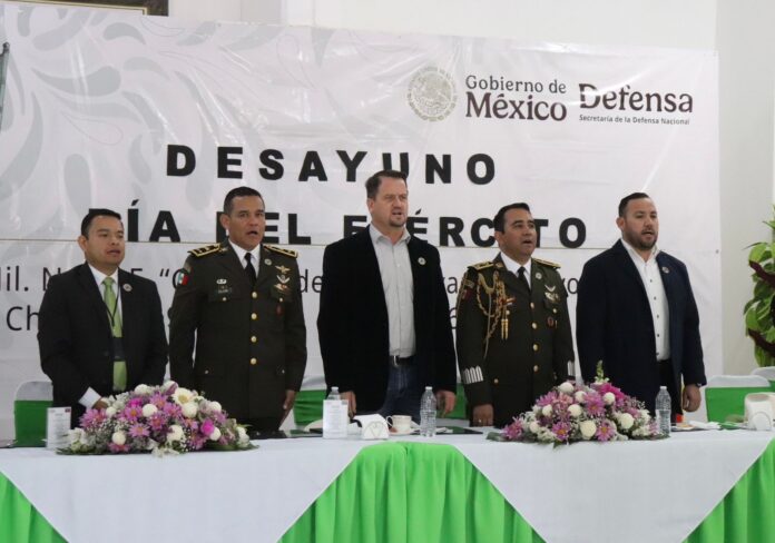 El Presidente Municipal de Casas Grandes, Roberto Lucero Galaz, asistió esta mañana al desayuno conmemorativo por el Día del Ejército Mexicano, realizado en las instalaciones del 35 Batallón de Infantería.