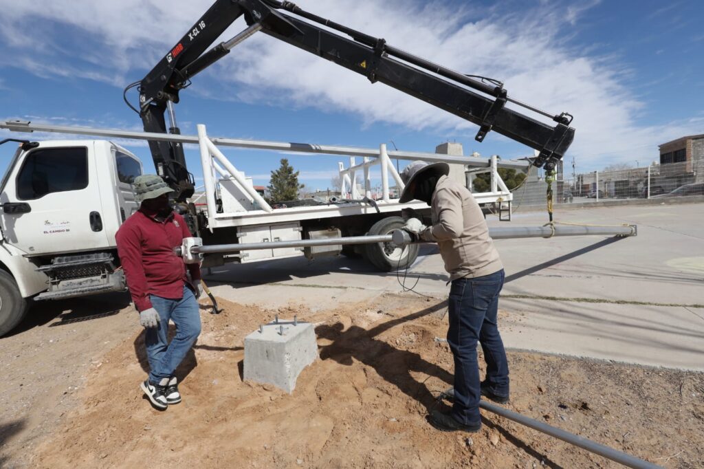 Como parte de las acciones, se instalaron ocho luminarias tipo LED de 80 watts, así como tres arbotantes dobles y tres bases de concreto de 1.20 metros para fortalecer la estructura del sistema de alumbrado.
