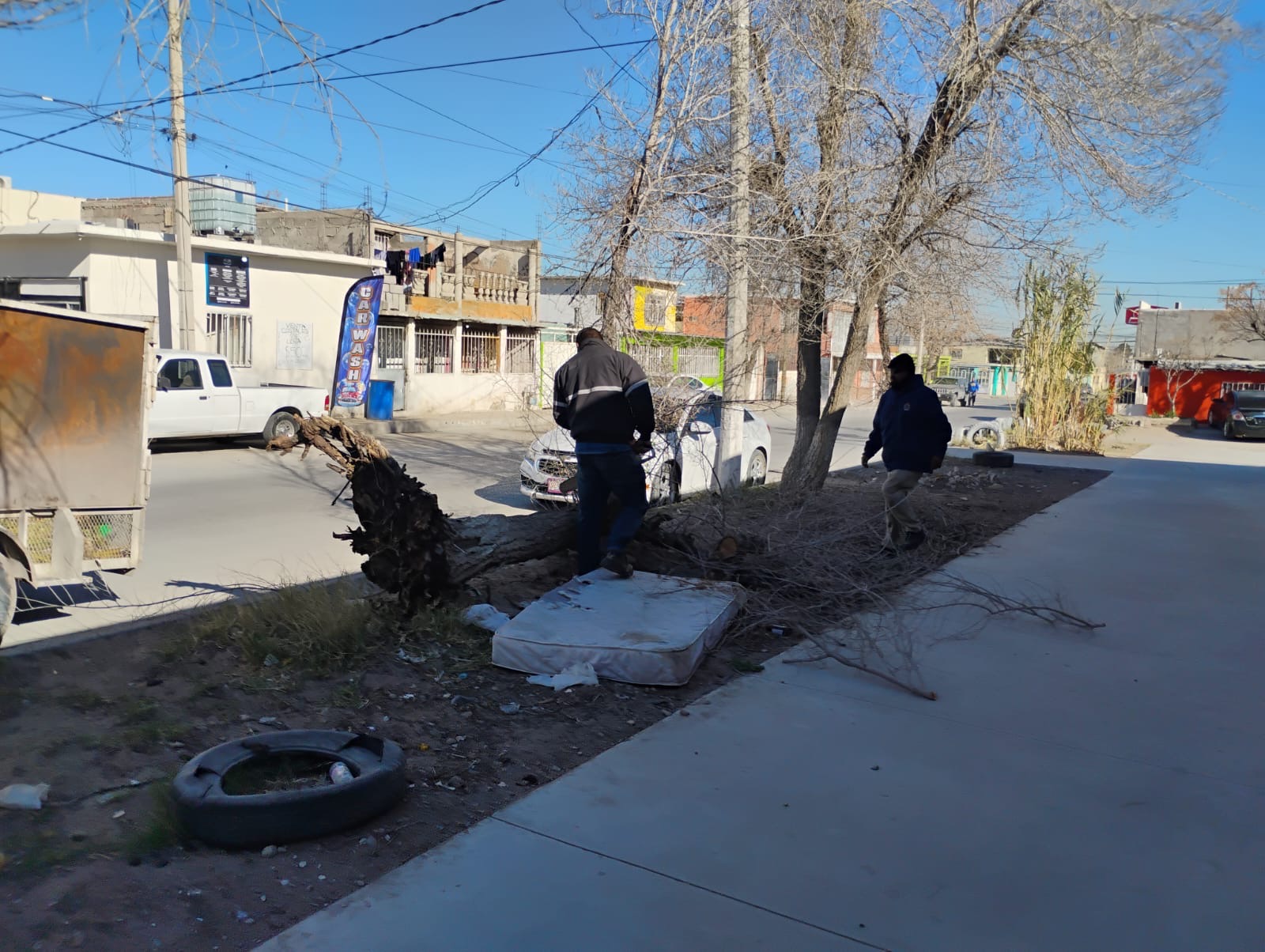 Las cuadrillas de la Dirección de Parques y Jardines llevaron a cabo trabajos de limpieza general y poda de formación en el Centro Comunitario Zaragoza, ubicado en el cruce de las calles Ramón Rayón y Lázaro Cárdenas.