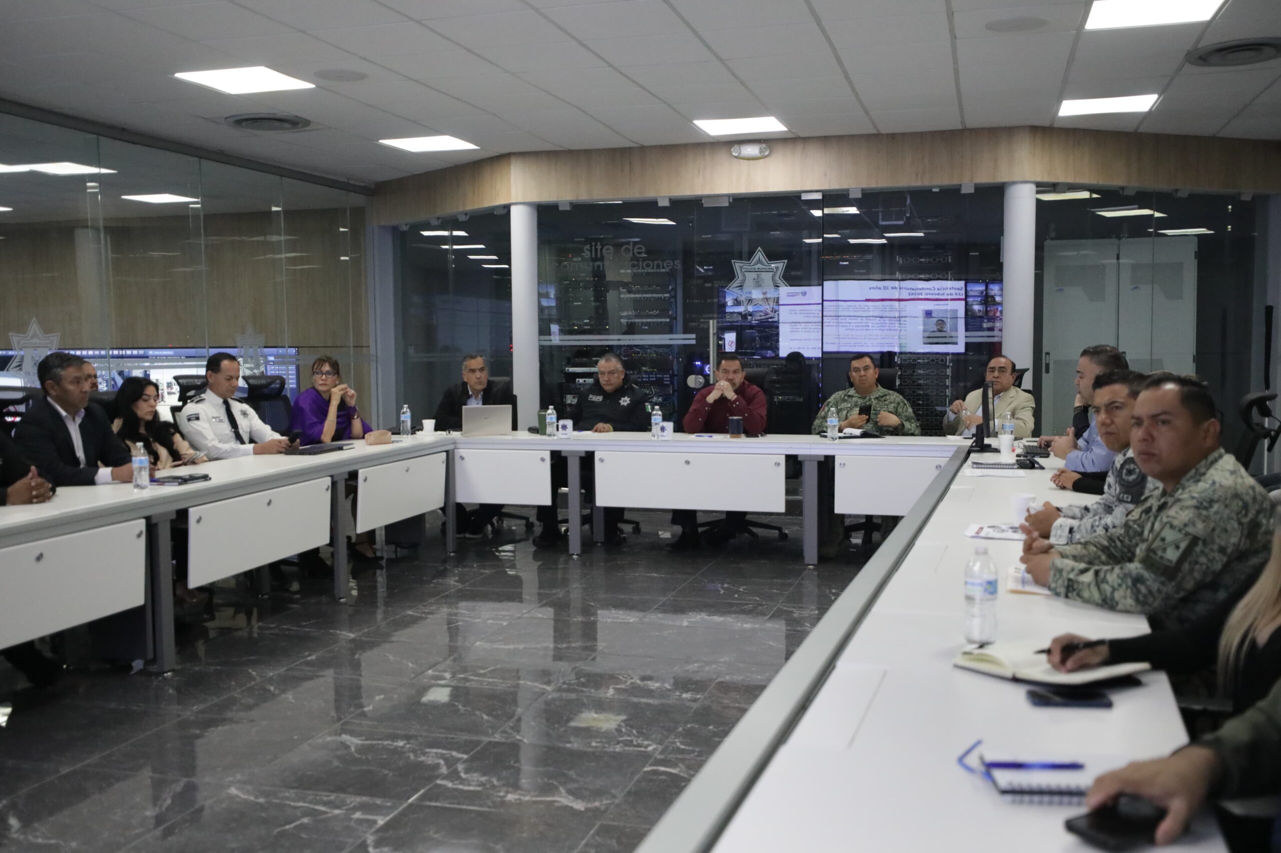 El Presidente Municipal, Cruz Pérez Cuéllar, encabezó la reunión de la Mesa de Coordinación para la Construcción de la Paz, donde las autoridades de los tres órdenes de Gobierno dieron a conocer sus actividades para dar seguridad a la ciudadanía.