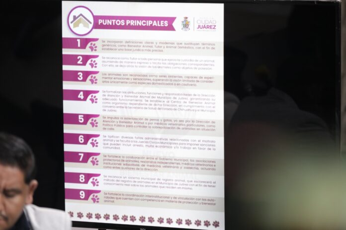 Luego de que se dio a conocer el proyecto de Reglamento de Bienestar Animal para el municipio de Juárez, la directora de Atención y Bienestar Animal (DABA), Alma Edith Arredondo Salinas, invitó a los juarenses a participar para enriquecer este documento en beneficio de las mascotas y de la misma comunidad.