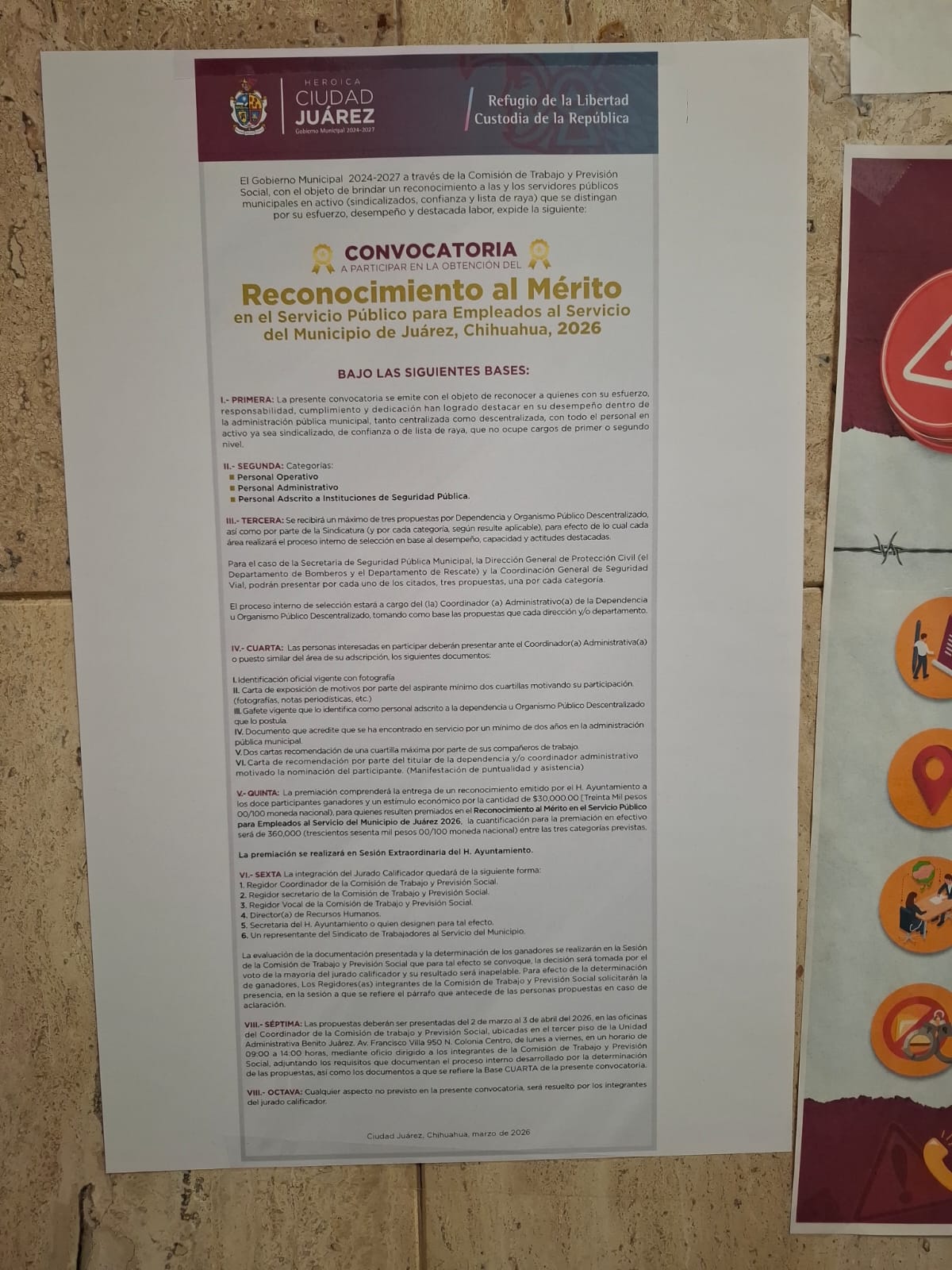 El Gobierno Municipal, a través de la Comisión Edilicia de Trabajo y Previsión Social invitó a directores generales y de área de la administración, para que postulen a sus trabajadores en el certamen al Reconocimiento al Mérito en el Servicio Público para Empleados al Servicio del Municipio de Juárez, edición 2026.