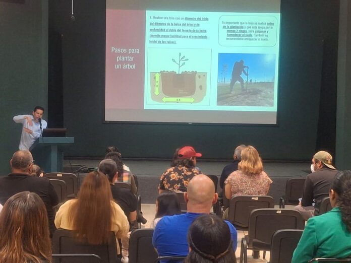 Durante la capacitación, en el Instituto Municipal de Investigación y Planeación (IMIP), el coordinador de Cultura Sustentable de Parques y Jardines, Víctor Manuel Herrera Correa, explicó paso a paso el proceso adecuado para plantar un árbol, desde la preparación de la fosa hasta el riego y mantenimiento durante sus primeras etapas de crecimiento.