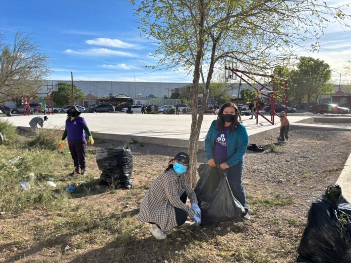 Como parte de las acciones comunitarias impulsadas por el Gobierno Municipal, el Instituto Municipal de las Mujeres (IMM) se sumó a la estrategia “Juárez Amanece Limpio” con una jornada de limpieza en un parque del fraccionamiento Rincones del Solar II.