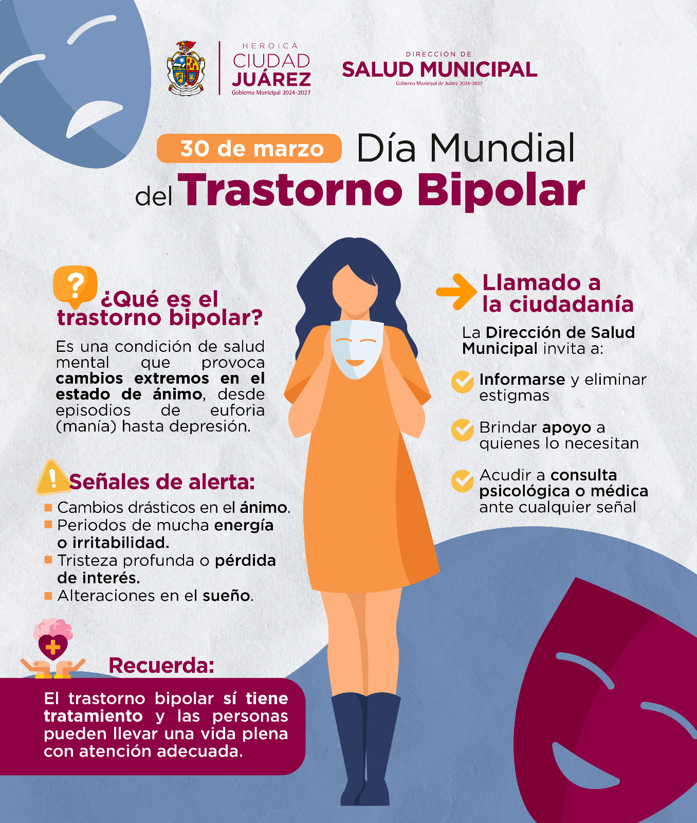 La Dirección de Salud Municipal recordó que el trastorno bipolar sí tiene tratamiento, y que con atención adecuada las personas pueden llevar una vida plena.