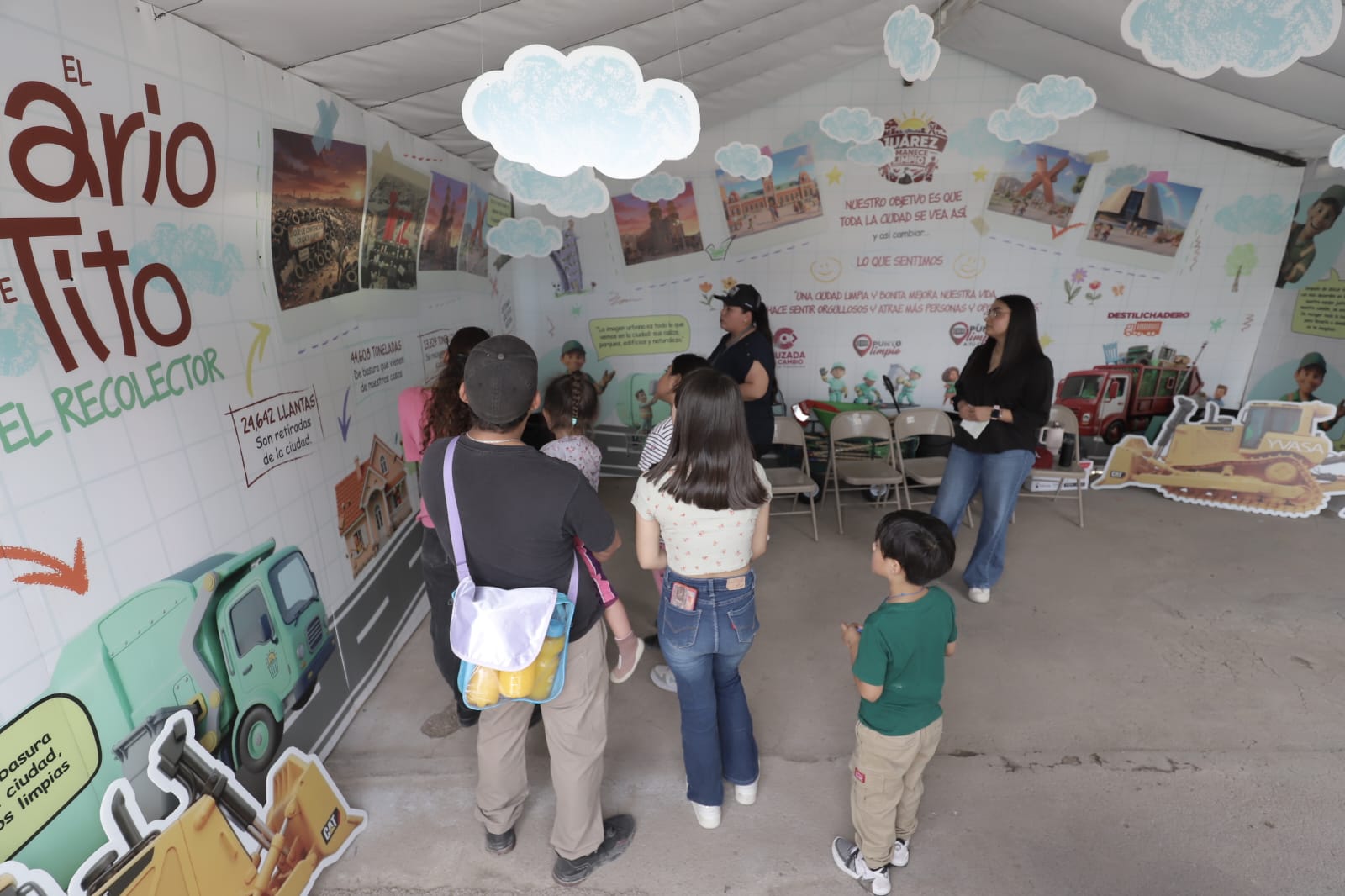 La Dirección de Limpia instaló un stand con diversas actividades diseñadas para promover la importancia de mantener una ciudad limpia; mediante dinámicas lúdicas busca que los menores comprendan el valor del trabajo en equipo entre ciudadanía y gobierno, así como la responsabilidad compartida en el manejo adecuado de residuos.
