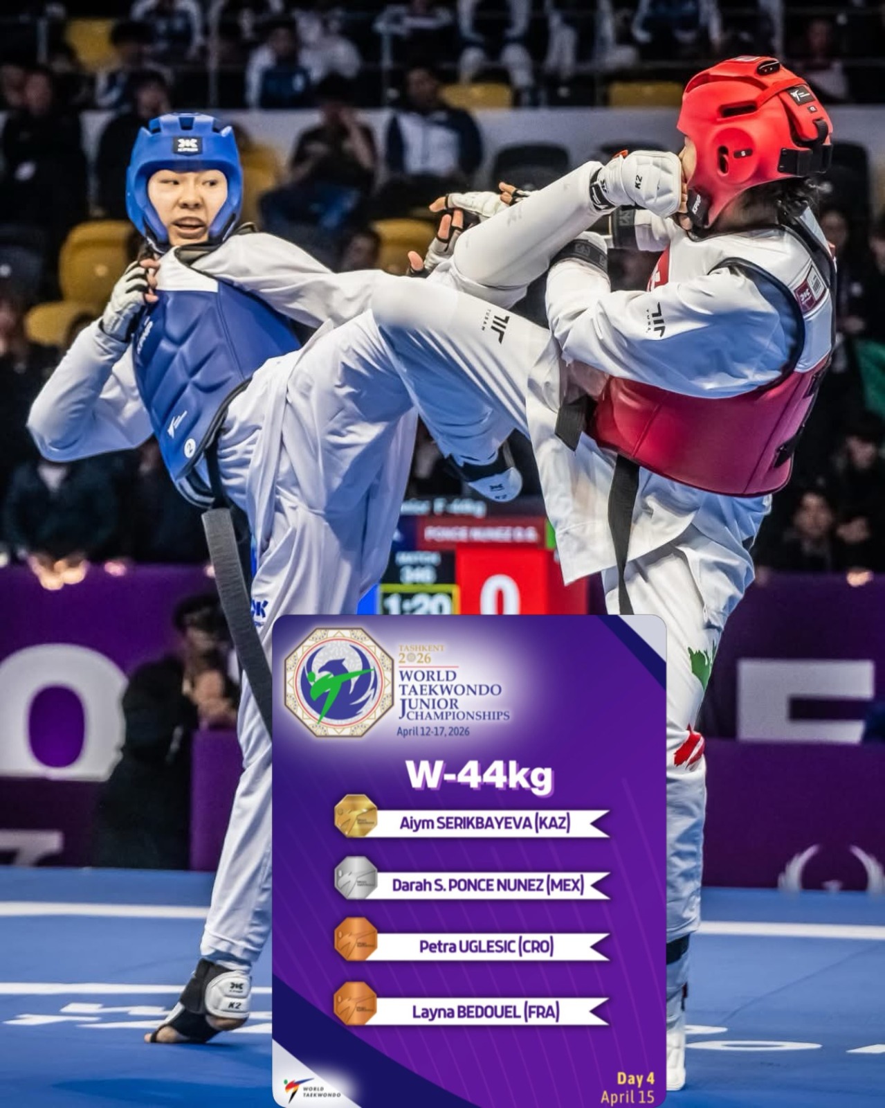 La juarense Darah Ponce se convirtió en la subcampeona del mundo, luego del combate contra la kazaja Aiym Serikbayeva en la final del Tashkent 2026 World Taekwondo Junior Championships, torneo que se efectúa en Tashkent, Uzbekistán.