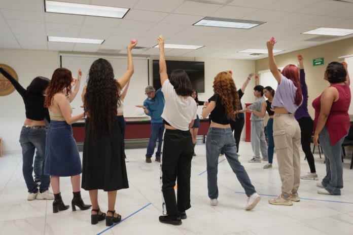 Universitarios que integran los grupos representativos de rondalla, danza moderna, teatro y danza folklórica tomaron la Masterclass titulada “Desenvolvimiento escénico” la cual fue impartida por el maestro César Cabrera Sánchez, la tarde del jueves 16 de abril.