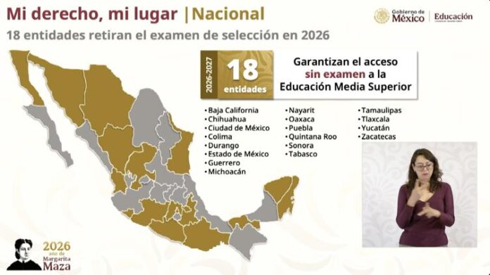 Durante la presentación del modelo de Bachillerato Nacional, la funcionaria explicó que 18 estados ya aplican un esquema de ingreso sin examen, como parte de la transformación educativa impulsada por el gobierno federal.