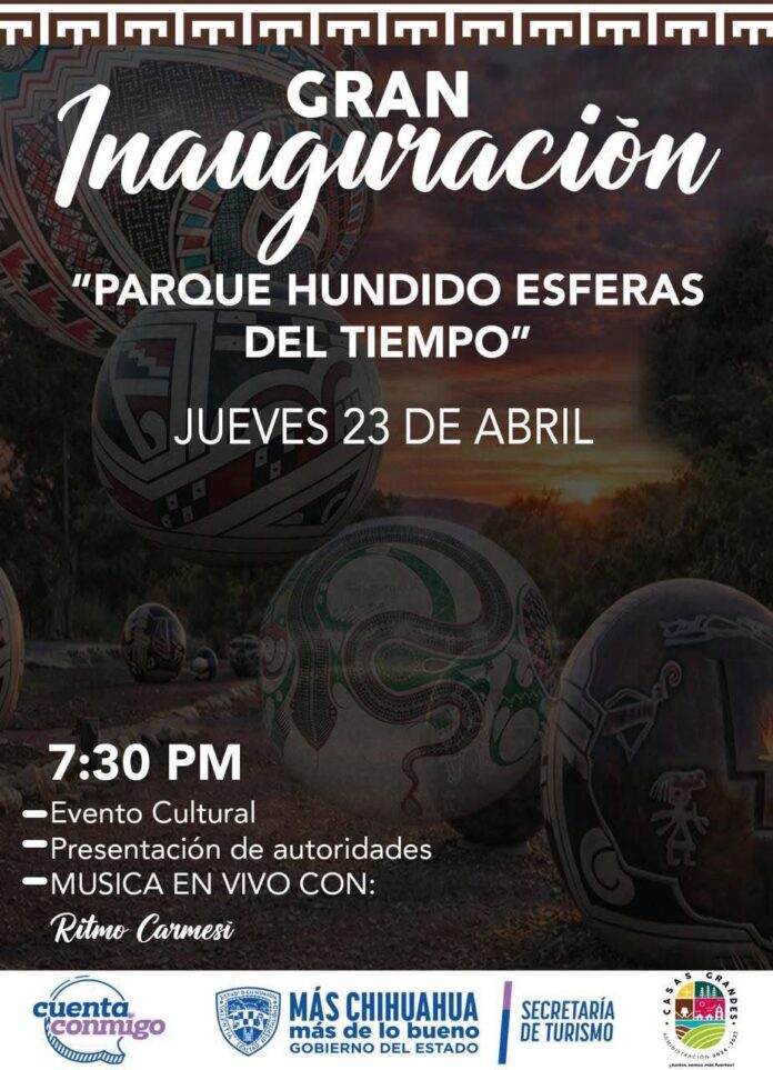 Este jueves 23 a las 19:30 horas será inaugurado el “Parque Hundido de las Esferas del Tiempo” mismo que se ubica en la entrada del Pueblo Mágico de Casas Grandes.